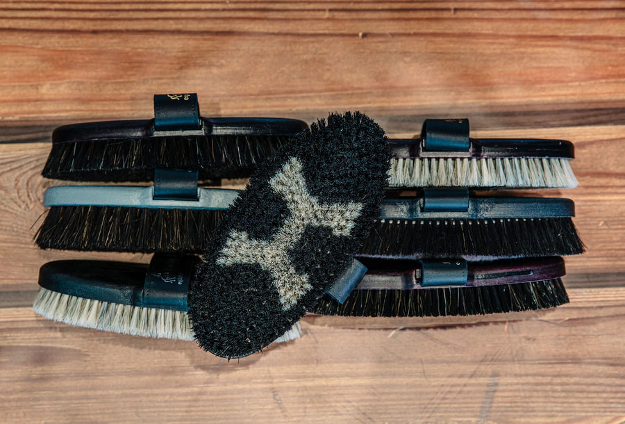 The 1st brush in this collection is a game-changer. With its soft bristles, it effortlessly sweeps away dust and tackles the notorious "matt effect" commonly seen on these horses. From the very first stroke, you'll witness the remarkable transformation as the dust, deeply embedded in the coat, vanishes. The gentle yet effective bristles delicately grip the soft coat, ensuring a thorough cleaning experience from the skin outwards.